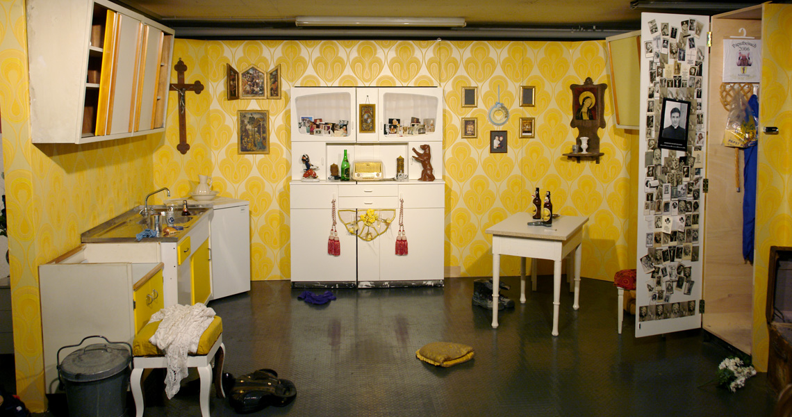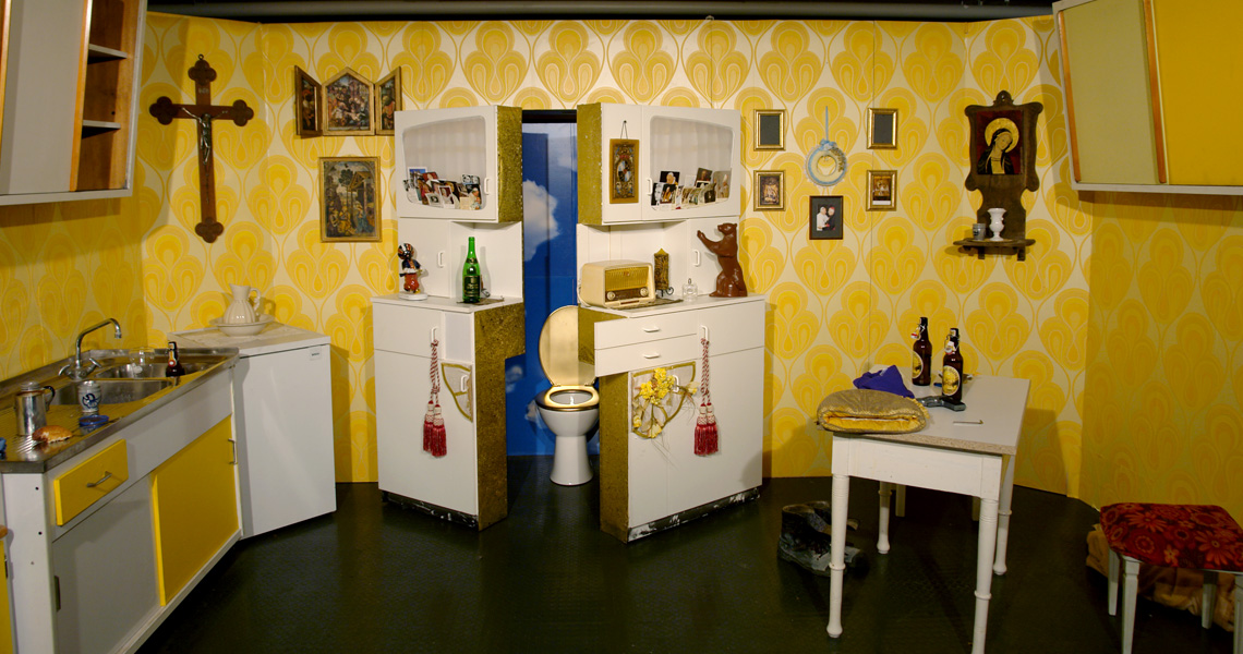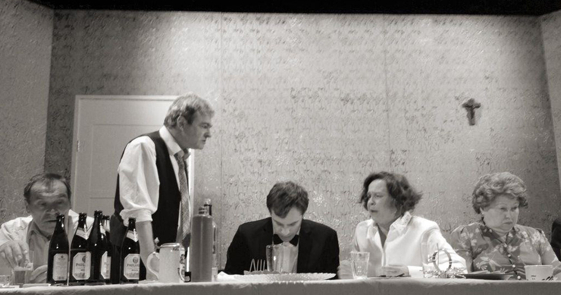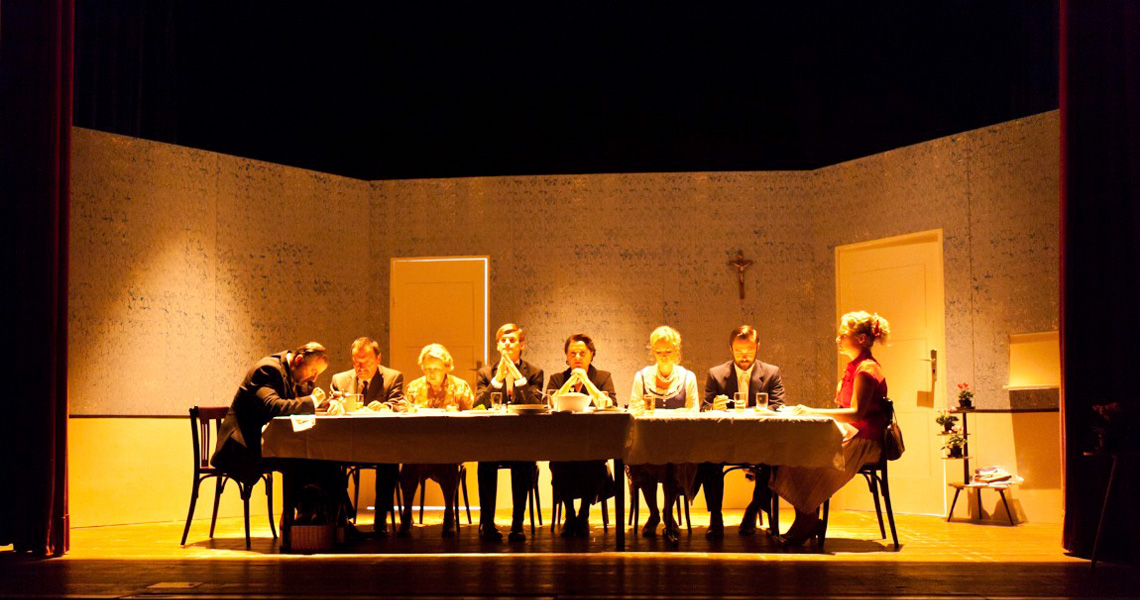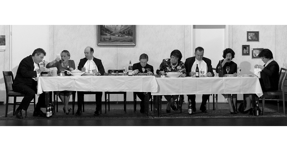 Die Kulisse ist bewußt schlicht gehalten um den Fokus vollkommen auf den Familientisch und die Gespräche rundherum zu richten.